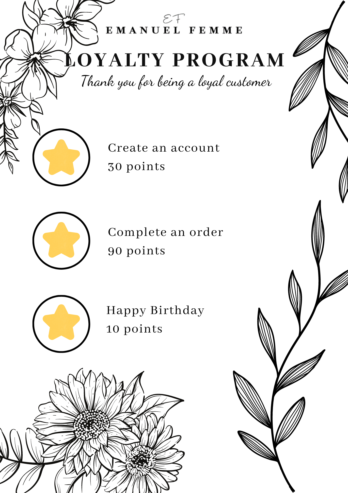 Sign up with us. Join our loyalty program and get Free points right after you've created an account with us.