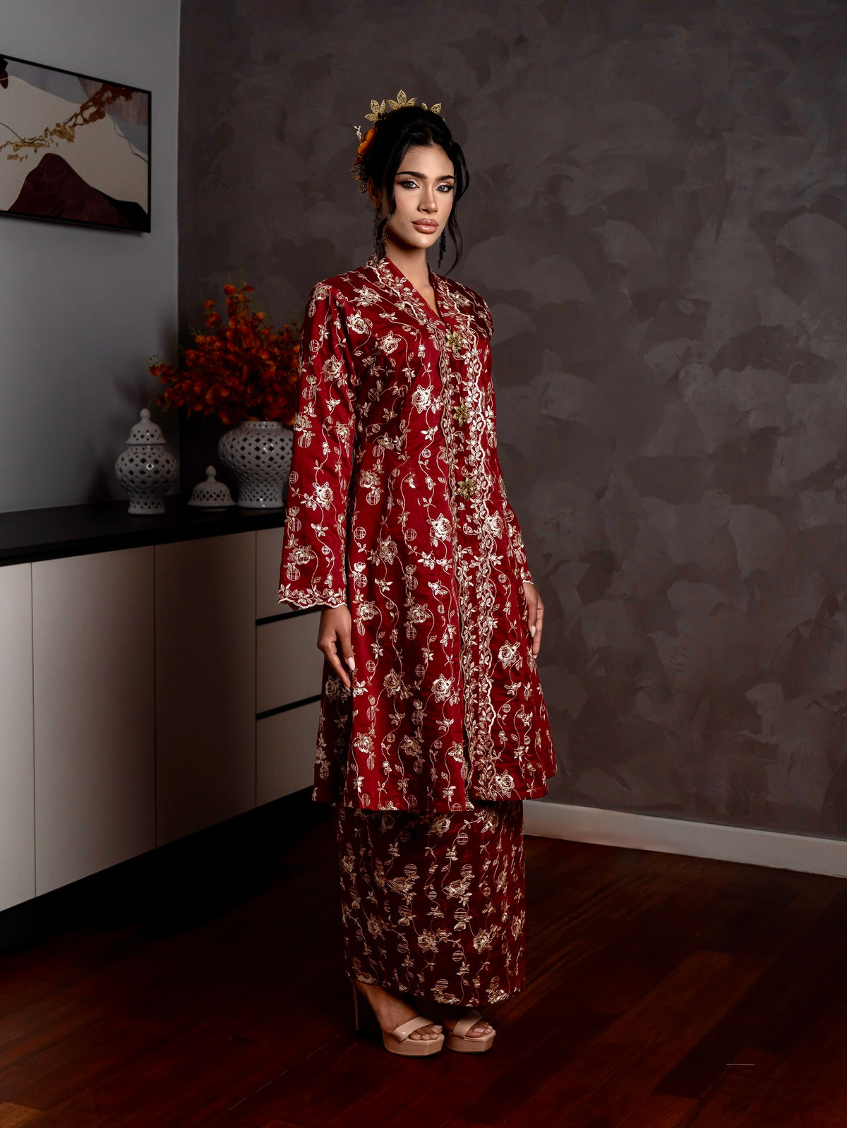 Qaseh Kebarung is the embodiment of timeless Raya elegance, crafted for the woman who cherishes tradition with a refined modern soul.